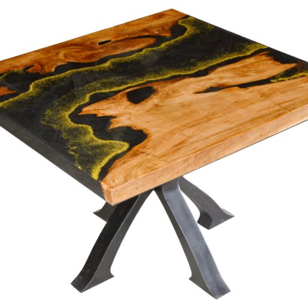 Golden Acrylic Square Table with Iron Base