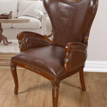 Mango Wood Solid Parquet and Linen Chair 39 Inches