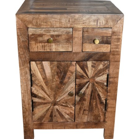 Mango Wood Solid Parquet Bedside 2 Door Cabinet