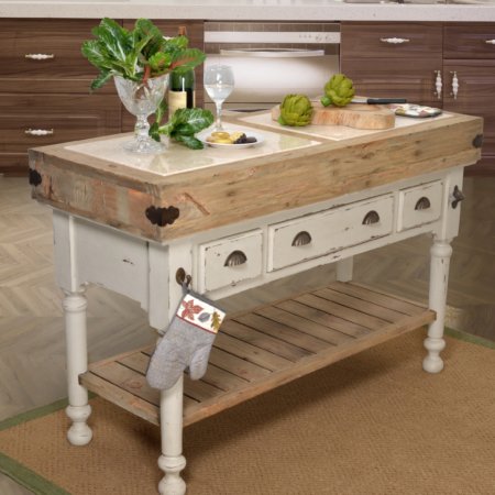Marble Top 3 Drawer Kitchen Island In Chaulk White