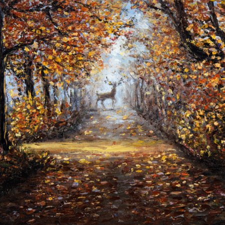 Autumn Deer 36×48 Gallery Wrapped Hand Embellished Giclee Canvas