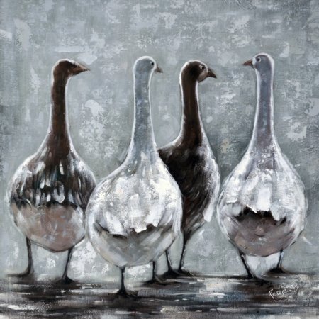Black and White Geese 36×48 Gallery Wrapped Hand Embellished Giclee Canvas