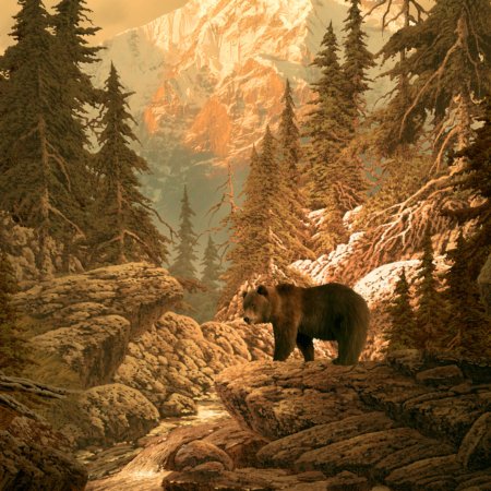 Bear in the Forest 36×48 Gallery Wrapped Hand Embellished Giclee Canvas