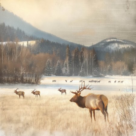 Deer in the Mountains 36×48 Gallery Wrapped Hand Embellished Giclee Canvas