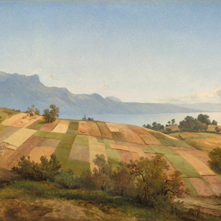 Watercolor Lake Mountainview 36×48 Gallery Wrapped Hand Embellished Giclee Canvas