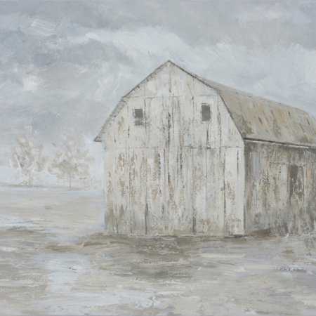 Gray and White Barn on Farm 36×48 Gallery Wrapped Hand Embellished Giclee Canvas