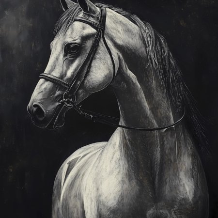 Stunning Black and White Horse 36×48 Gallery Wrapped Hand Embellished Giclee Canvas