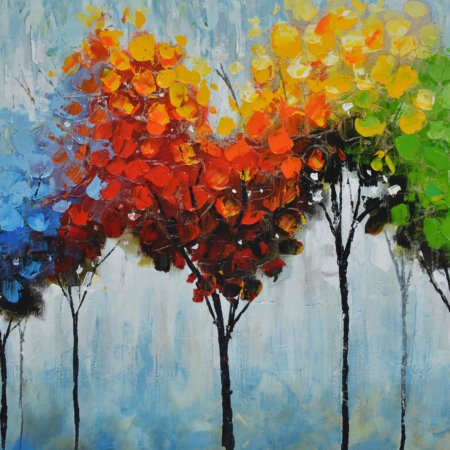 Colorful Autumn Trees 36×48 Gallery Wrapped Hand Embellished Giclee Canvas