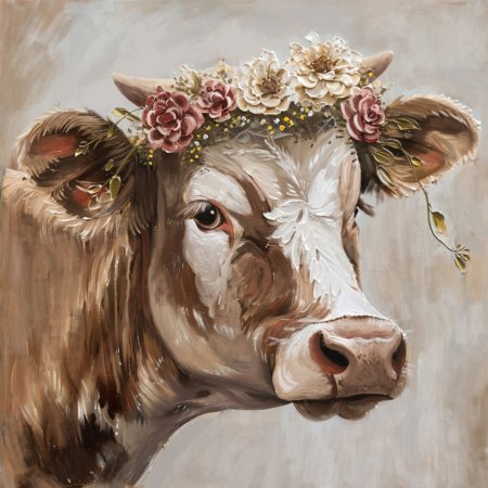 Floral Crown Cow 36×48 Gallery Wrapped Hand Embellished Giclee Canvas