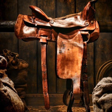 Western saddle on a wood rail 36×48 Gallery Wrapped Hand Embellished Giclee Canvas