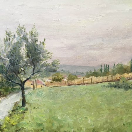 Green Hillside Landscape 36×48 Gallery Wrapped Hand Embellished Giclee Canvas