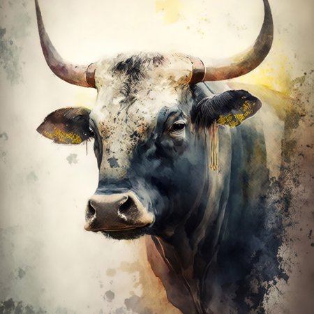 Bull Face 36×48 Gallery Wrapped Hand Embellished Giclee Canvas