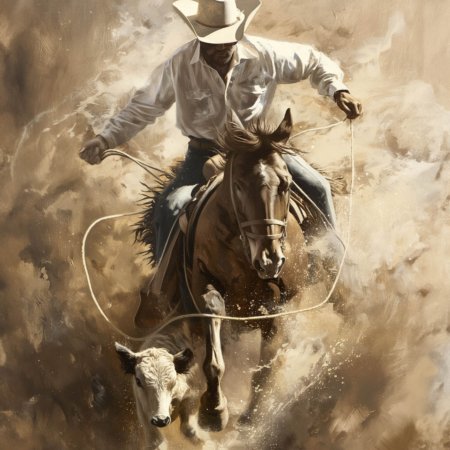 Cowboy Lassoing a Cow 36×48 Gallery Wrapped Hand Embellished Giclee Canvas