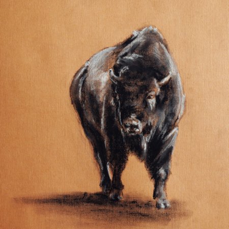 The Watchful Bison 36×48 Gallery Wrapped Hand Embellished Giclee Canvas