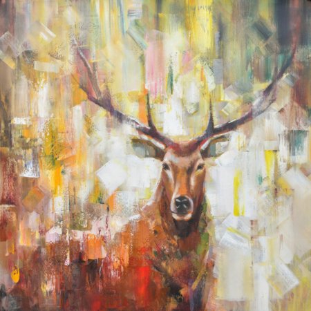Deer 36×48 Gallery Wrapped Hand Embellished Giclee Canvas