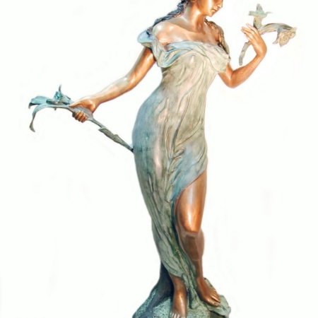 Bronze Lady standing with flower fountain