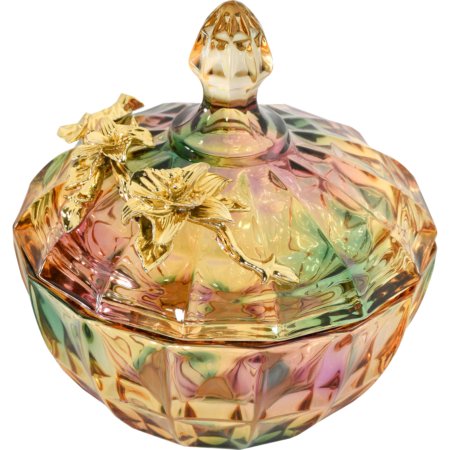 Multi Color Cut Glass Cannister With Gold Accent