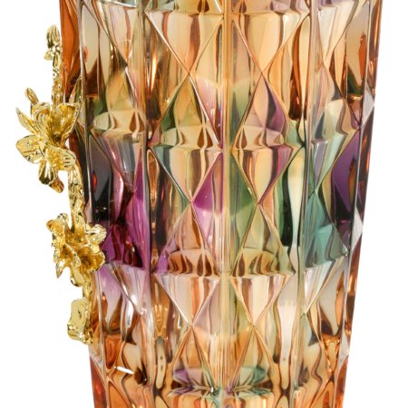 Multi Color Cut Glass Vase With Gold Accent