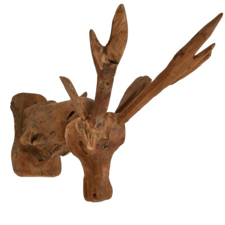 Teak Trophy Deer Head Wall Mount Sculpture 12″W x 17″D x 29″H