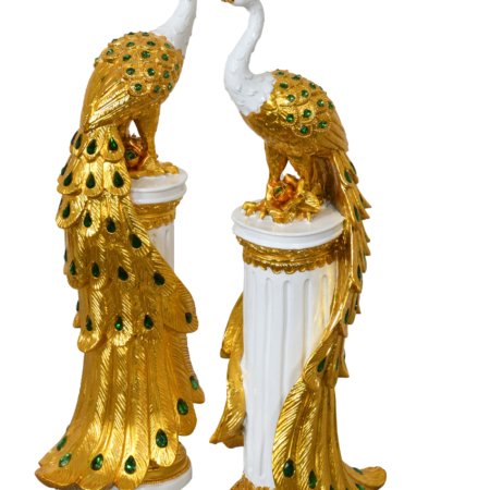 Golden Emerald Peacocks on Pedestal Set of 2
