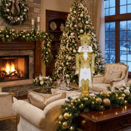 Festive Royal Silver Gold and White Nutcracker with LED Lights