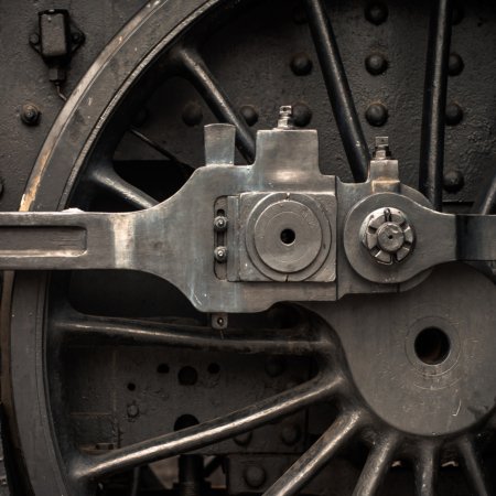 Train Locomotive Wheel Close Up 36×48 Gallery Wrapped Hand Embellished Giclee Canvas