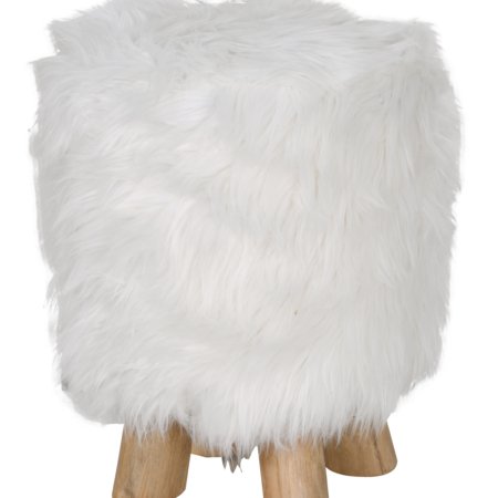 Woolly Faux Pouf Ottoman Stool With Natural Log Feet