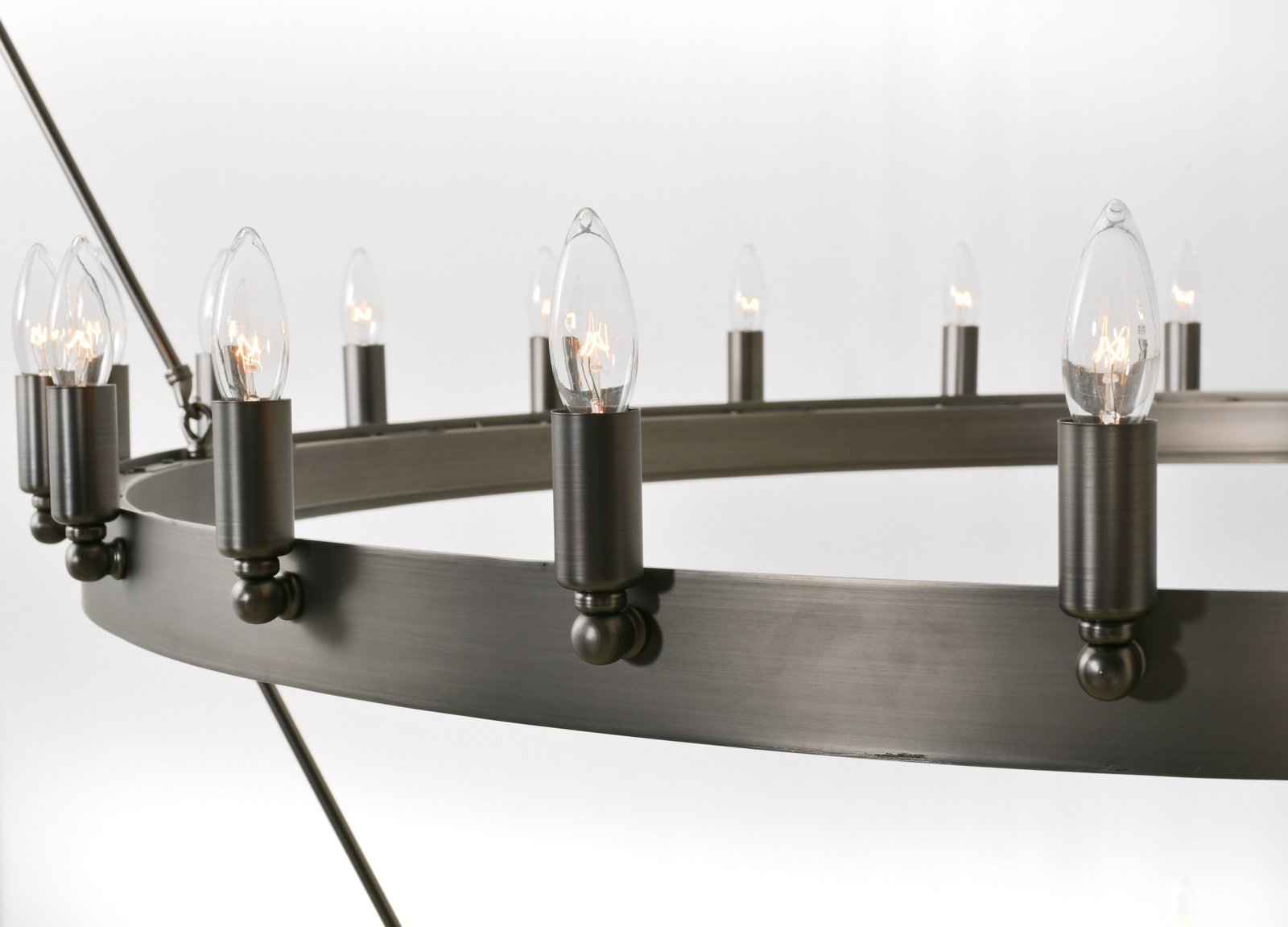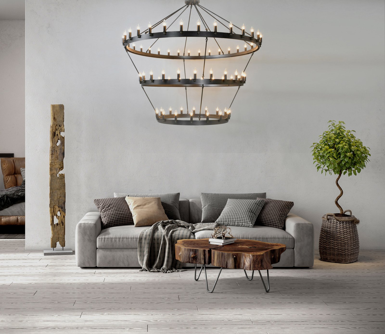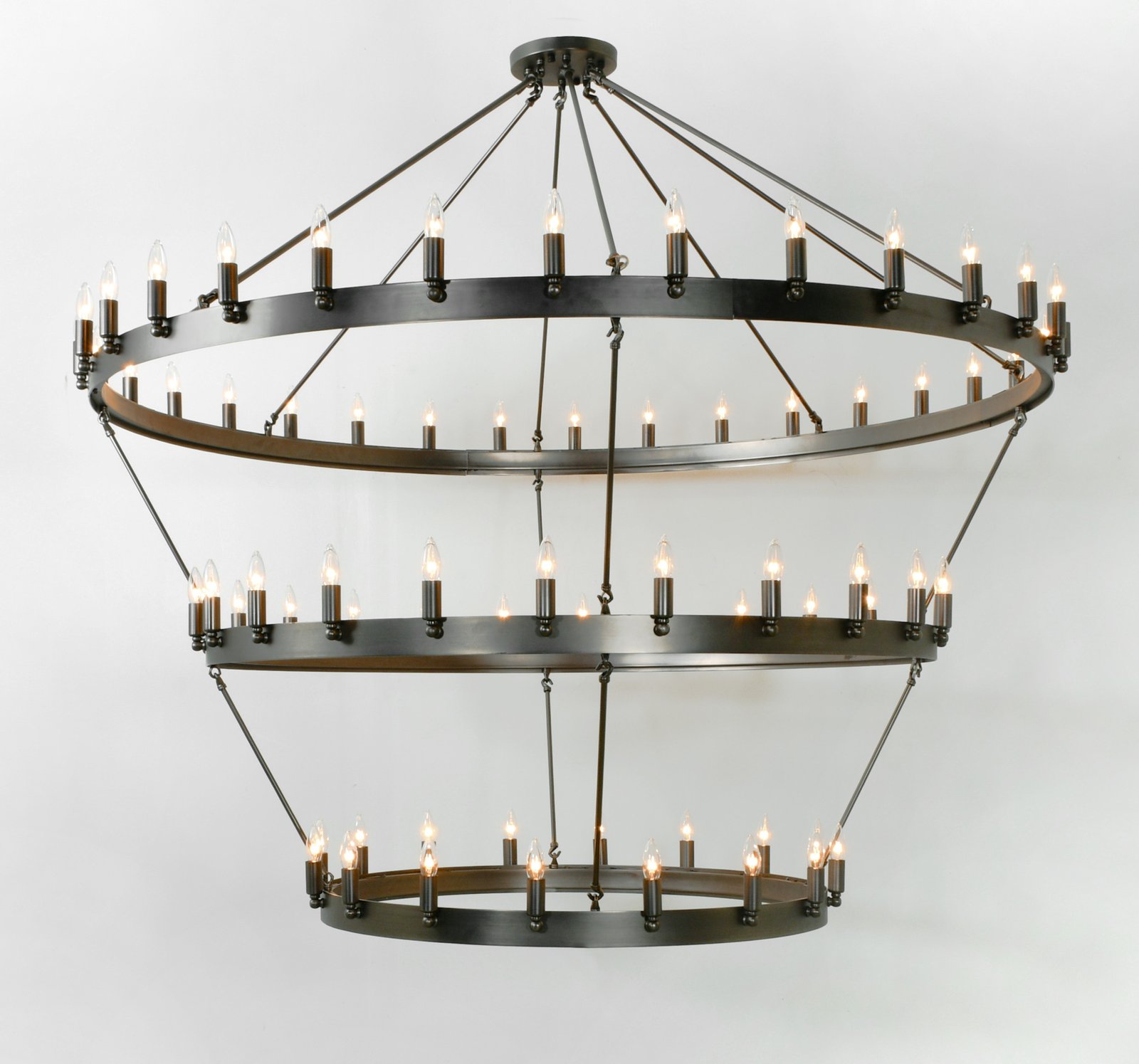 Bring bold elegance and timeless character to your space with the Highland Grand Three Tier Iron Chandelier. With its stately presence and industrial charm, this three tiered lighting fixture evokes the warm glow of a historic lodge while seamlessly complementing modern, rustic, and transitional interiors. Crafted with robust iron rings and candle-style lights, itÂ’s designed to make a statement in grand entryways, living rooms, and open concept spaces.