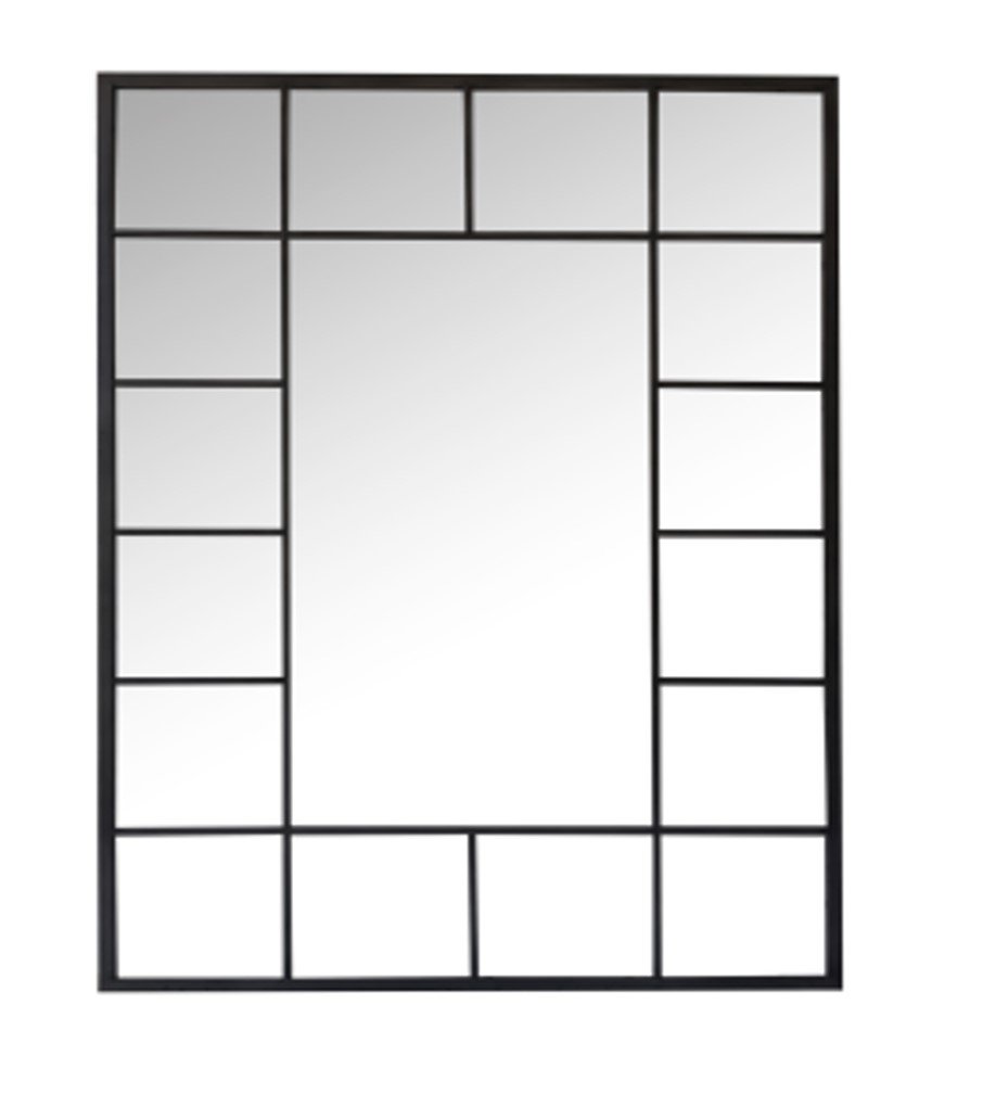 Elevate your space with the Architectural Iron Window Mirror a stunning addition that seamlessly blends classic design with modern elegance. This impressive mirror, measuring 48 x 72 inches, features an architectural iron frame finished in a timeless black. The outer border of the mirror showcases a lattice application, creating individual panels of square mirror glass that surround the substantial center mirror. This design adds a touch of sophistication and visual interest, making it a versatile statement piece for any room. Whether leaned against a wall or hung vertically or horizontally, this mirror offers flexibility in styling to suit your preferences. D rings are thoughtfully attached to the back for easy wall mounting, although mounting hardware is not included. With its large size and simple yet captivating beauty, the Architectural Iron Window Mirror becomes a focal point in any space, effortlessly complementing a variety of interior styles. Transform your home with this stylish and versatile mirror that combines form and function in perfect harmony.
