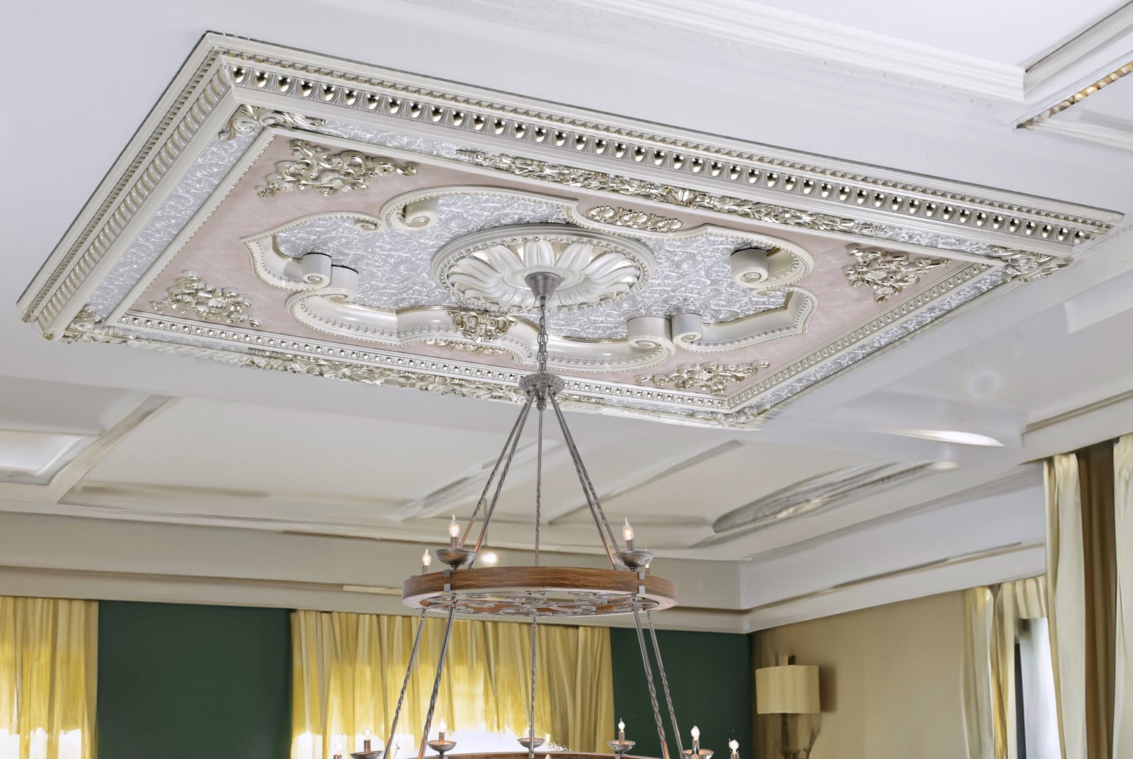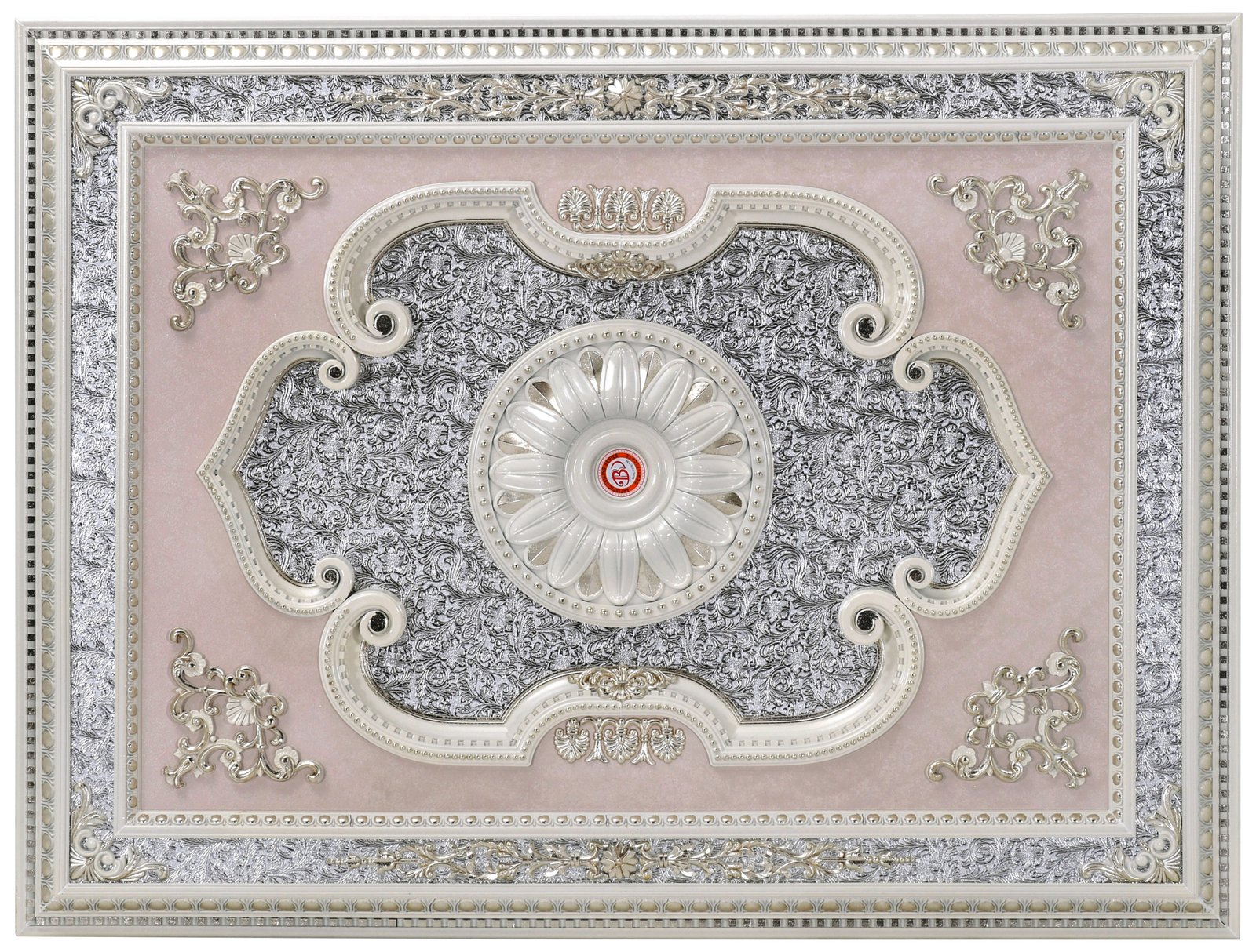 63in Silver and Pink Retangular Ceiling Medallion