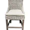 - Original, Imported, hand woven Kuba Grey Weave Seating, a timeless design constructed to Last! Our Alfresco design Counter Height Stool has the potential of solving many design challenges: Kuba stools and chairs have gorgeous natural colors and bring texture and interest into Interior spaces. These counter or gathering height stools work beautifully with almost any type of kitchen counter or counter height Table. These handwoven Kuba Stools are also chosen for their sturdy construction and will withstand use, for many years to come. They are Hand woven one seat at a time by skilled craftspeople. Manufactured to sit as comfortably as they are beautiful, the seats have been slightly widened and the backs of the stool are relaxed. You will like that the seat comes with a removable neutral cushion. The hand applied white wash finish, offering a softer tone for lighter interior requirements and works perfectly from Farmhouse to Coastal to Lighter Transitional.
