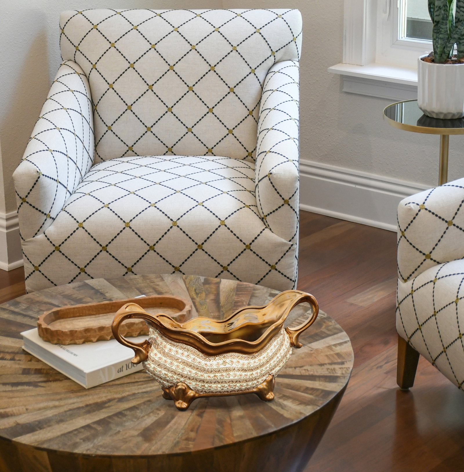 - Hand cast in porcelain with a striking gold plated body and accents.