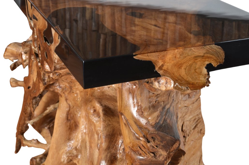 - This natural solid 48 Inch Teak Wood Root Console is uniquely processed with a floating top of Black Epoxy resin, an AFD Home Exclusive.