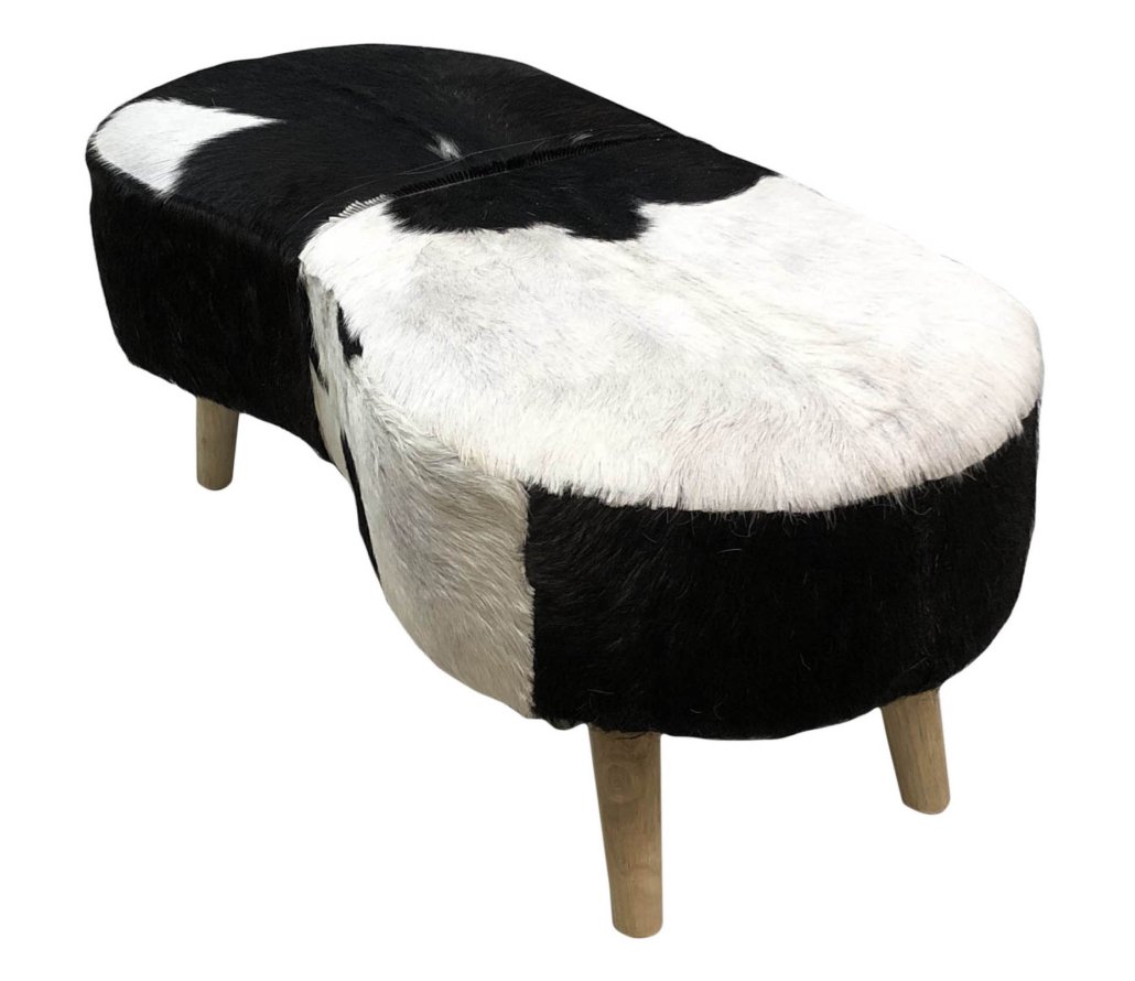 A natural rustic designed Settee or Bench referred to by the locals as the Peanut Bench, named for its fun shape. The Bench is authentically hand made, using Timber and natural hide, functional and very decorative. The overall measurements 49.00 x 20.50 x 18.00 seat Height. Local craftspeople search for the perfect natural wood timbers to construct this authentic Rustic Design. The Hide is also real fur from Goats the villagers raise. The Bench is often ordered as a cool accent seating solution for a pure Rustic Interior, the bench sits at dining table height and offers a seating option for a table. Hand Made in Indonesia for AFD Home. No Assembly Required