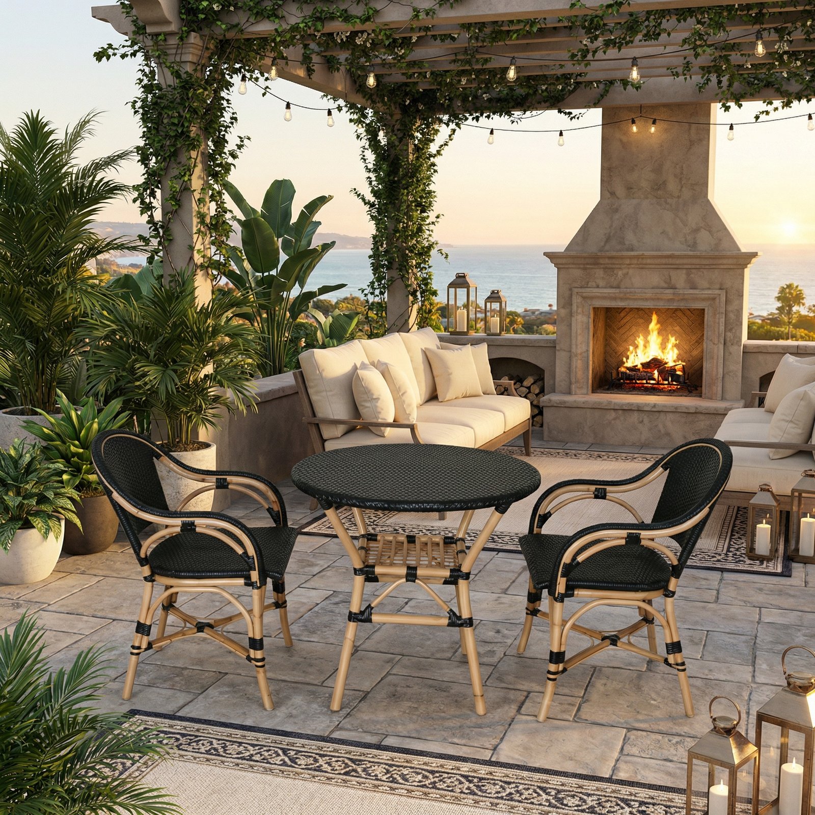 Hand crafted one piece at a time the Sierra Bistro Collection is perfect for the breakfast nook or patio. Bamboo constructed framing is wrapped in all weather wicker. Wonderful 3 piece set