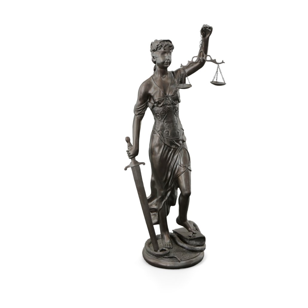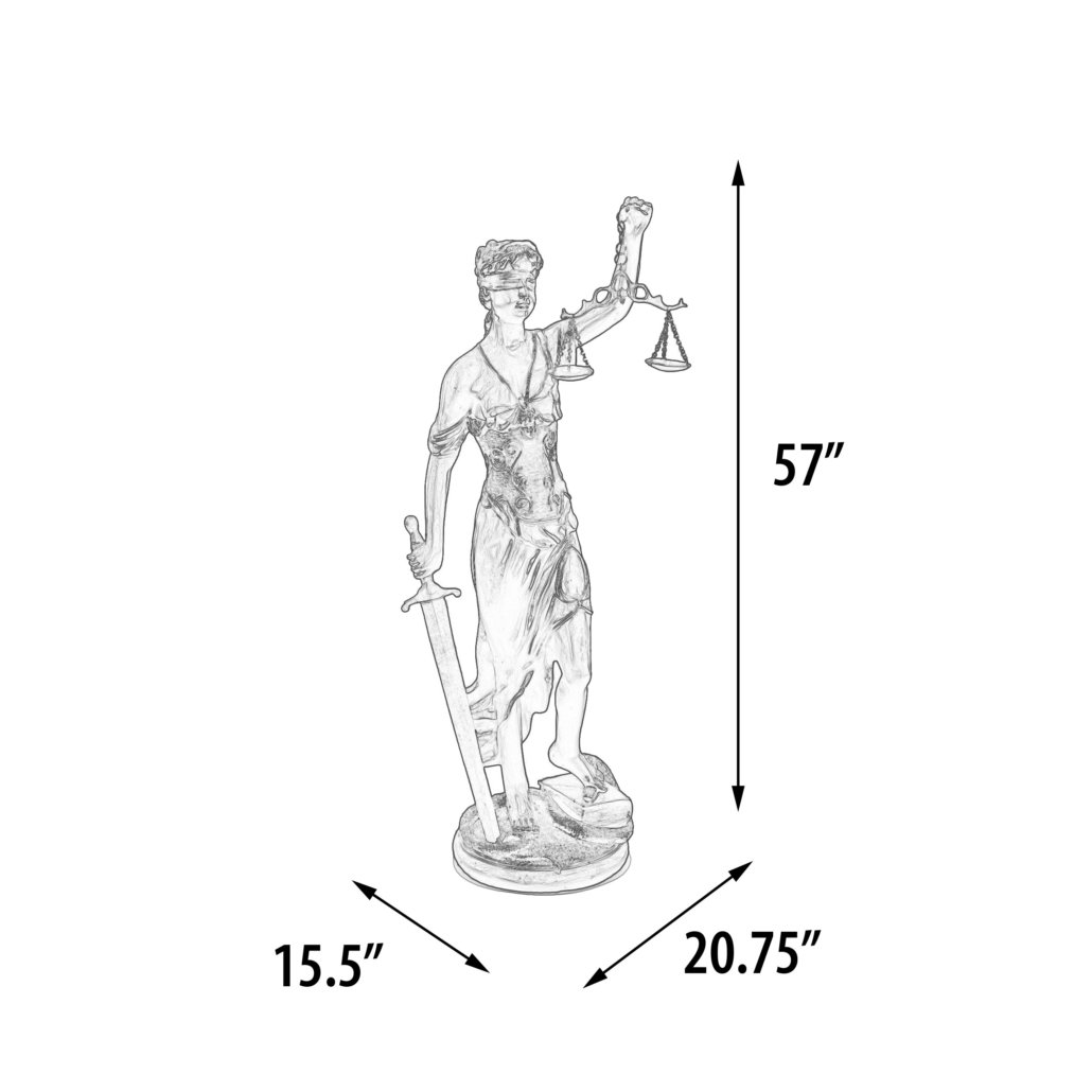 The Blind Justice is a meaningful classic sculpture that represents the foundation of our system of justice and was artfully depicted as a reminder to those of the beauty and strength of our system. The scales held by Lady Justice symbolizes the measure of a case’s support and opposition, the blindfold on her represents no preconceived determination. The re-creation was Artist sculpted and then hand-cast in resin.