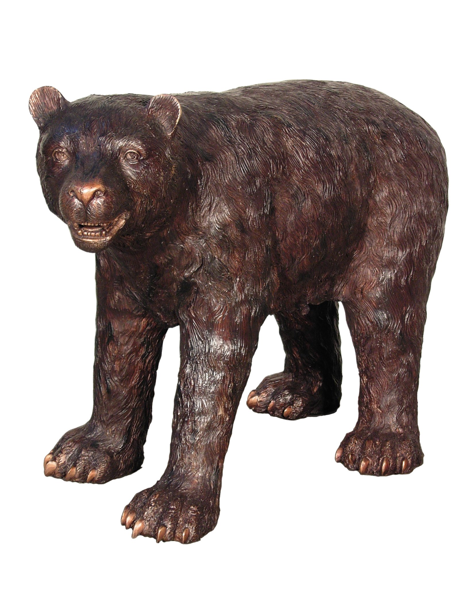 This Bronze American Black Baby Bear Standing 36 Inches Long offered is from the North America Wilderness Collection. This Disarmingly charming, sweet creature is North Americas most common species of bear. It is an exciting find to view in natural settings. They typically live in forests and are excellent tree climbers. They are also found in mountains and near rivers. While babies are very maternal and typically spend two years with their mom learning to fend for themselves. Black bears spend the season dormant in their dens, feeding on body fat they have built up by eating all summer and fall ravenously. This statue is 100 percent authentic hand cast bronze in lost wax molds by the Timeless Creations Collection by AFD Home. Bronze is suitable for Indoor or Outdoor use and will virtually last forever. It features a realistic hand applied finish featuring hues of subtle Silver accents and Polished Bronze. It measures 36 inches long X 16 inches deep X 24 inches tall. This Baby Bear will surely become a conversation piece for those who capture a glimpse. Consider adding this with the other members of the Black Bear family to create your own Sleuth or Pack or combine with other North American Animals from this Collection to enhance your natural settings, Hand Crafted by the Talented Bronze Artists in Thailand. No Assembly Required