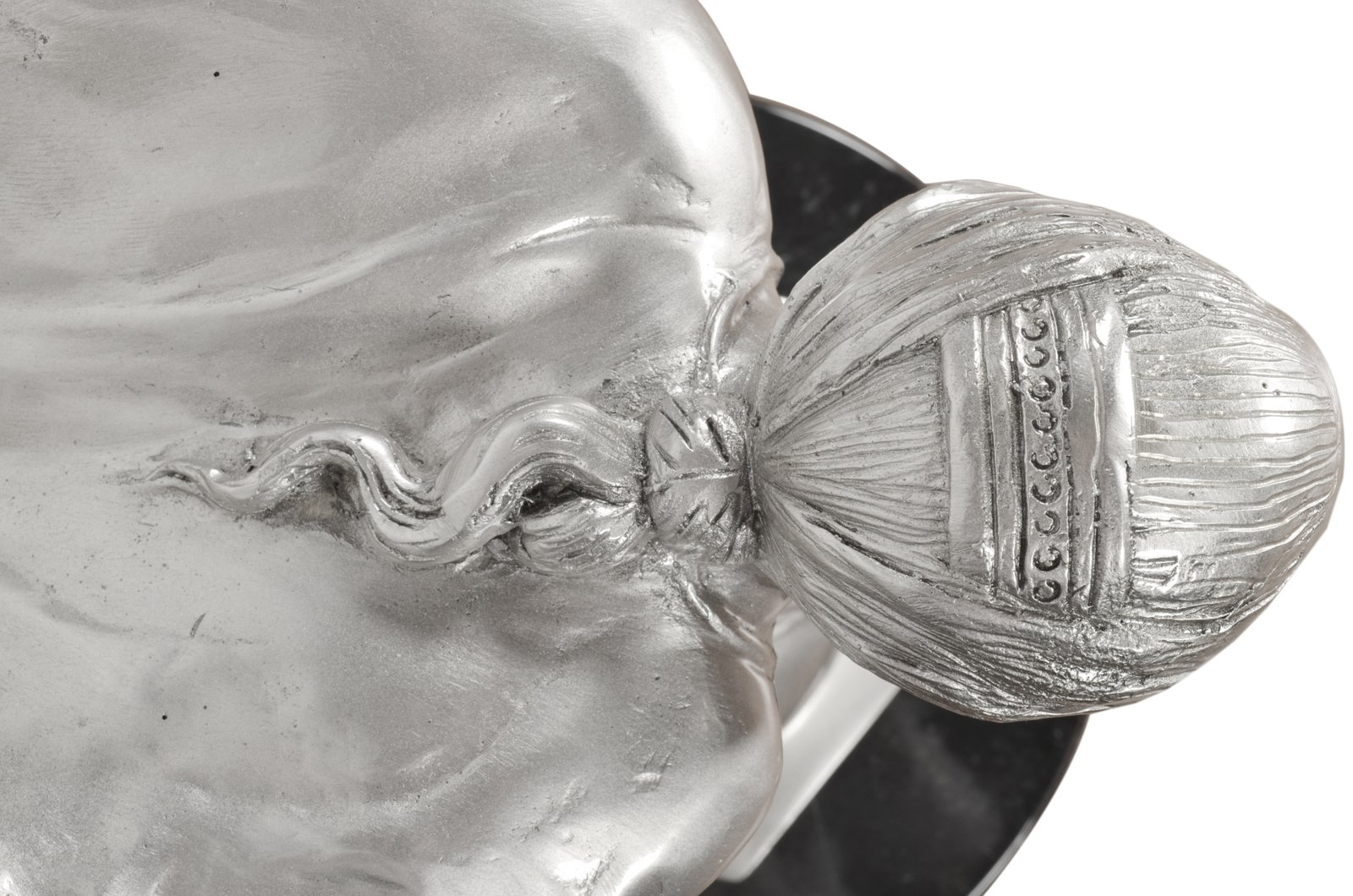 A collectible Bronze and Nickel Spirit of Ecstasy 28 Inch sculpture is a recreation of the popular Spirit of Ecstasy Sculpture after the original by Sykes. It is a highly recognizable work that was adopted by the luxury brand Rolls Royce, a design that embodies the Art Nouveau era that draws the eye of any individual. It is sure to keep a conversation going at an art show or dinner party. Websters Dictionary defines ecstasy as a complete state of joy, which was apparent in the free movement of this bronze statue. This Timeless Creation by AFD Home is a 100 percent lost wax cast bronze and then further elaborately plated with a special nickel silver finish over the bronze. Sits on a marble base, Hand Cast, and Finished in Thailand. No Assembly Required