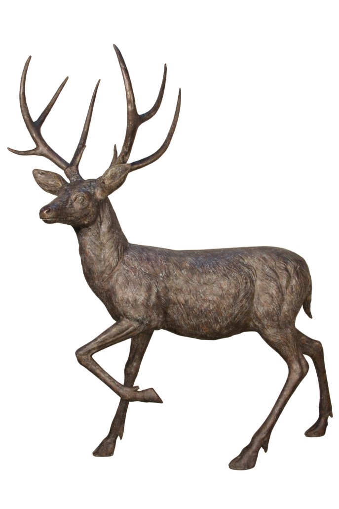 This Bronze Buck Standing 62 Inches Long offered is from the North America Wilderness Collection. The proud male of this species is recognizable with his full rack of Antlers. A beautiful animal that upon viewing creates excitement. They typically live in forests, mountains, and near water sources. This statue is 100 percent authentic hand cast bronze in lost wax molds by the Timeless Creations Collection by AFD Home. Bronze is suitable for Indoor or Outdoor use and will virtually last forever. It features a realistic hand applied finish featuring Brownish hues with subtle accents of polished Bronze. It measures 62 inches long X 30 inches deep X 77 inches tall. This Stag or Buck will surely become a major Focal Point that leads to many conversations when displayed in beautiful natural Settings. Consider adding this with the other members of the Deer family to create a family or combine with other North American Animals from this Collection to enhance your natural settings, Hand Crafted by the Talented Bronze Artists in Thailand. No Assembly Required