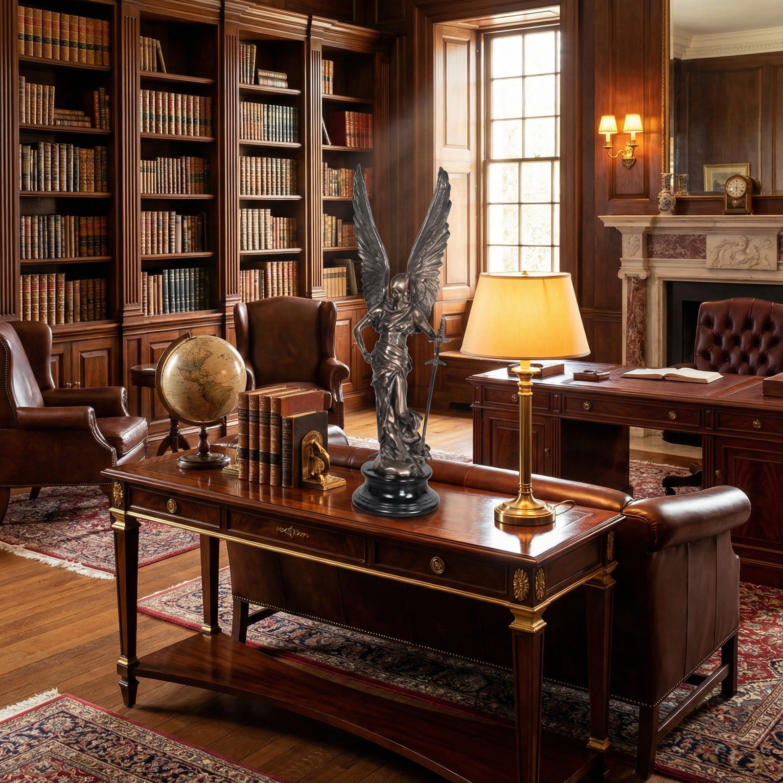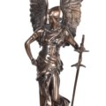 Our Bronzed Goddess of Victory at 10.25″ wide x 9.5″ deep x 36.5 ” tall is from our popular Platine Metal Series. The artist was able to recreate the powerful depiction of nobility strength and justice in this classical sculpture. The original design was Artist sculpted and then hand cast in Polyresin. The finished product comes mounted to a Black base. It features our special and rich Platine metal plated finish. A finish that enables the artists to burnish and polish the details creating a very expensive looking yet affordable decorative art.