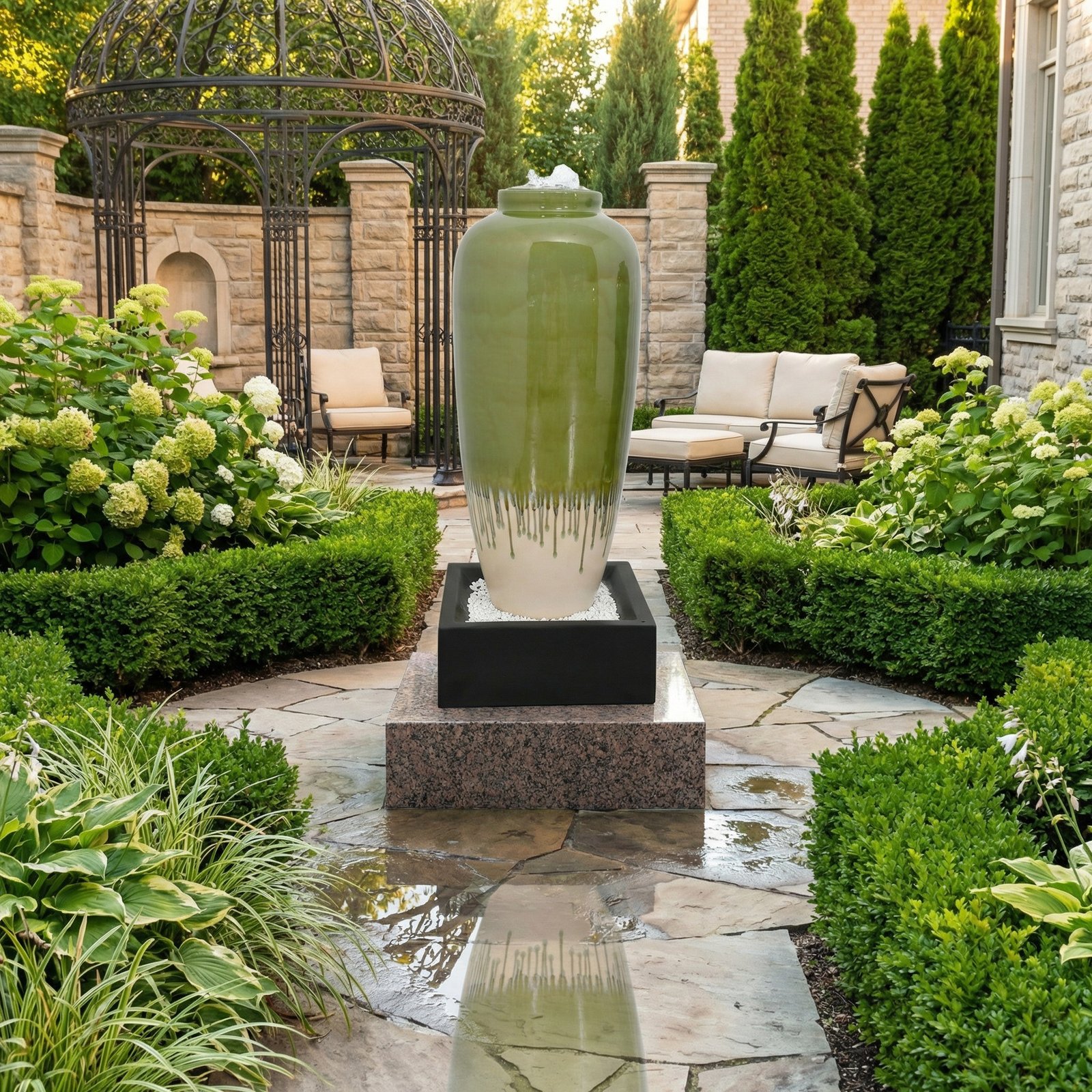 Avocado Green Bubbling Fountain With Base