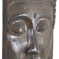 - Our popular Buddha Face Wall Decoration 23.5 Inch wide x 31.5 Inches tall offers a 4 Inch Sculptural dramatic projection from any Wall. The Wall sculpture is hand cast and hand finished in a durable fiberglass and cast stone reinforced material suitable for interior or exterior applications. The Black Earthy Finish used offers authenticity to the final Creation. Buddha heads are the icon of confidence, awareness, knowledge, compassion and concentrated meditative practices of how to individually and collectively be great, noble and kind human beings. Item is fully assembled and comes with Wall Decor Hangers Mounted for hanging, Your wall hardware is not Included.