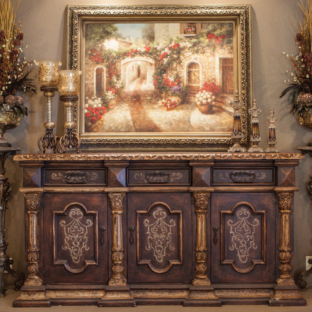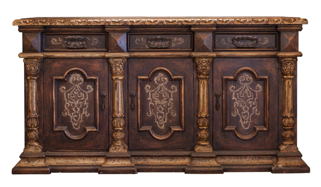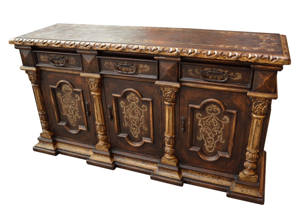 The Casa Grande Sideboard from our expansive Casa Grande Series is 84″ wide. This collection boasts a Spanish influence with its large scaled details in a popular finish of deep rustic browns featuring a contrast of distressed creamy whites and delicately detailed with hand painted soft scrolls. Consider pairing with other Casa Grande offerings from this series. The Casa Grande series is part of our Santa Lucia Collection consisting of handmade, hand painted, and distressed solid wood furniture making each piece a timeless investment. Hand crafted treasures made one piece at a time, under one roof, by our exclusive family owned manufacturer from Lima, Peru. Their master artisans are skilled in furniture making techniques influenced by the Spanish during the colonization of Peru. Many items in the diverse collection feature specialty hand painted finishes that have also been passed on and perfected from generation to generation. The family strives to be environmentally friendly by using woods re-purposed from haciendas and old colonial homes as well as wood indigenous to South American forests, primarily mahogany, cedar, mean and requia. If you are a lover of beautiful painted furniture, find hill country rustic romantic, or find richness in Mediterranean lore Then you too may fall in furniture love with this fine collection.