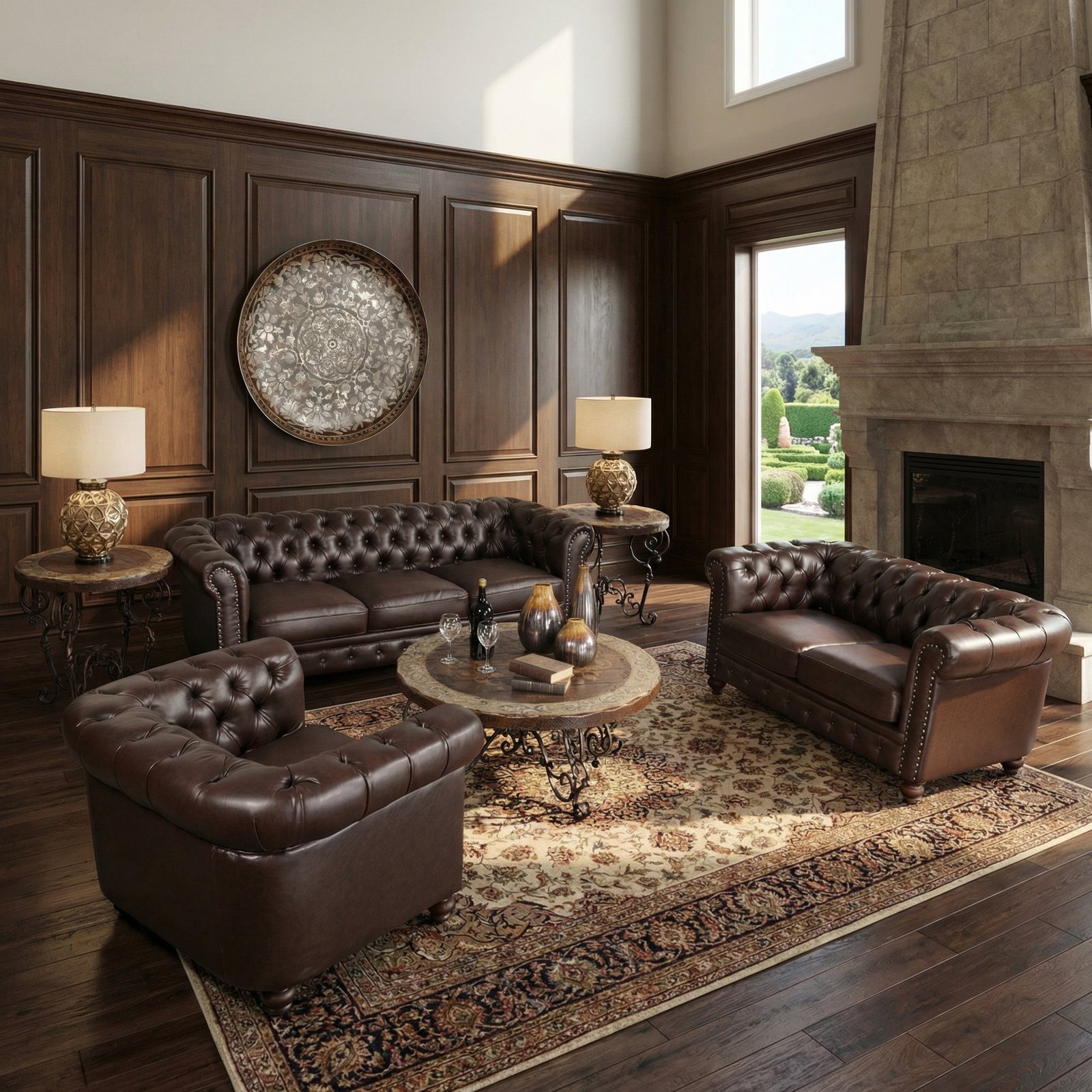 Classic Chesterfield Brown Sofa Set of 3 (KIT)