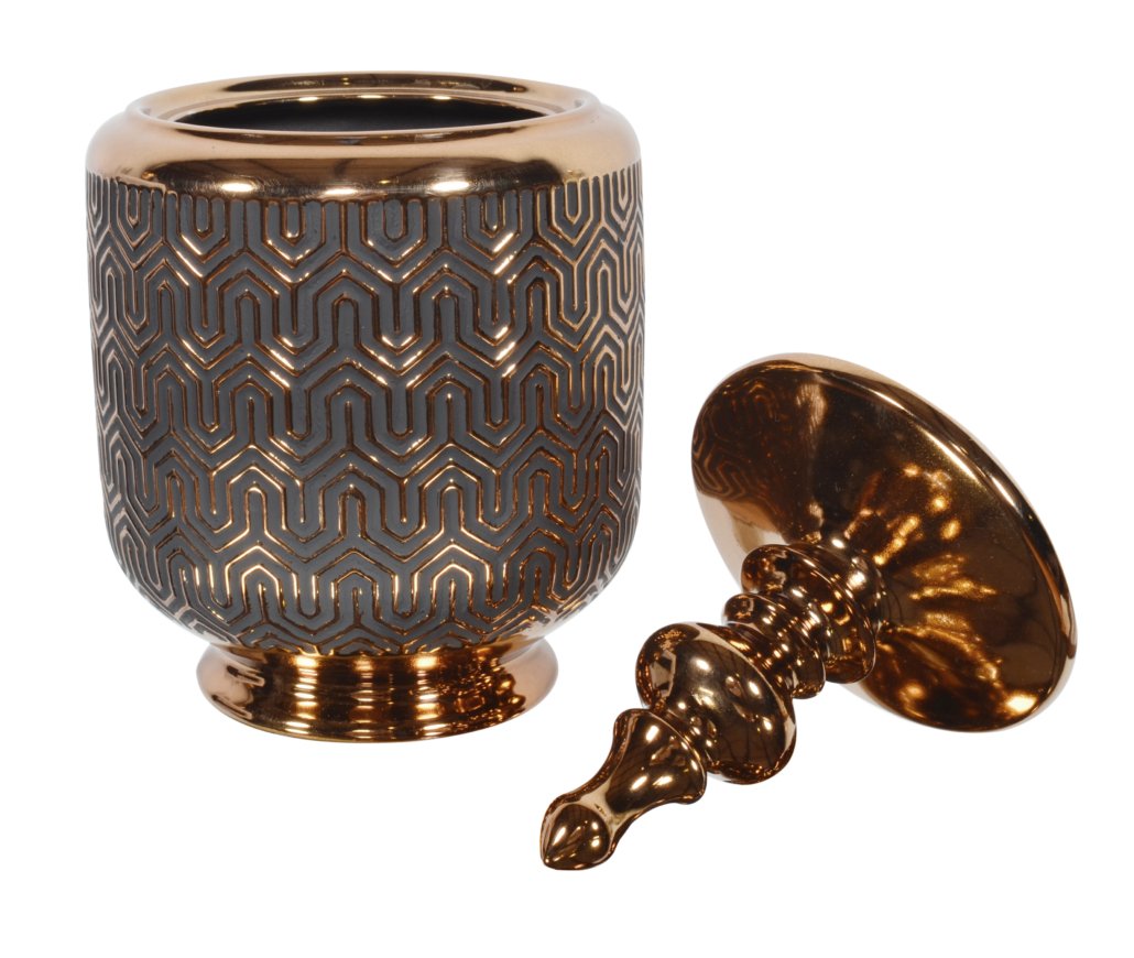 Add a designer touch to your home decor with this Copper Illusion Canister.