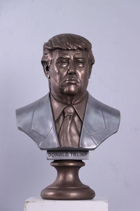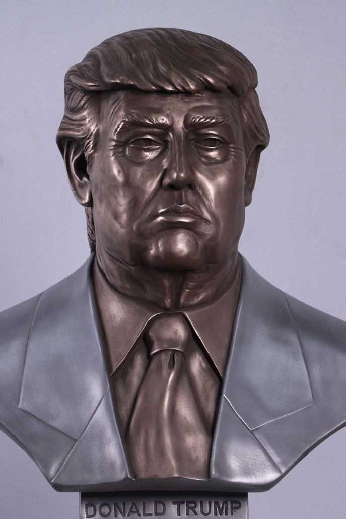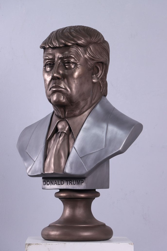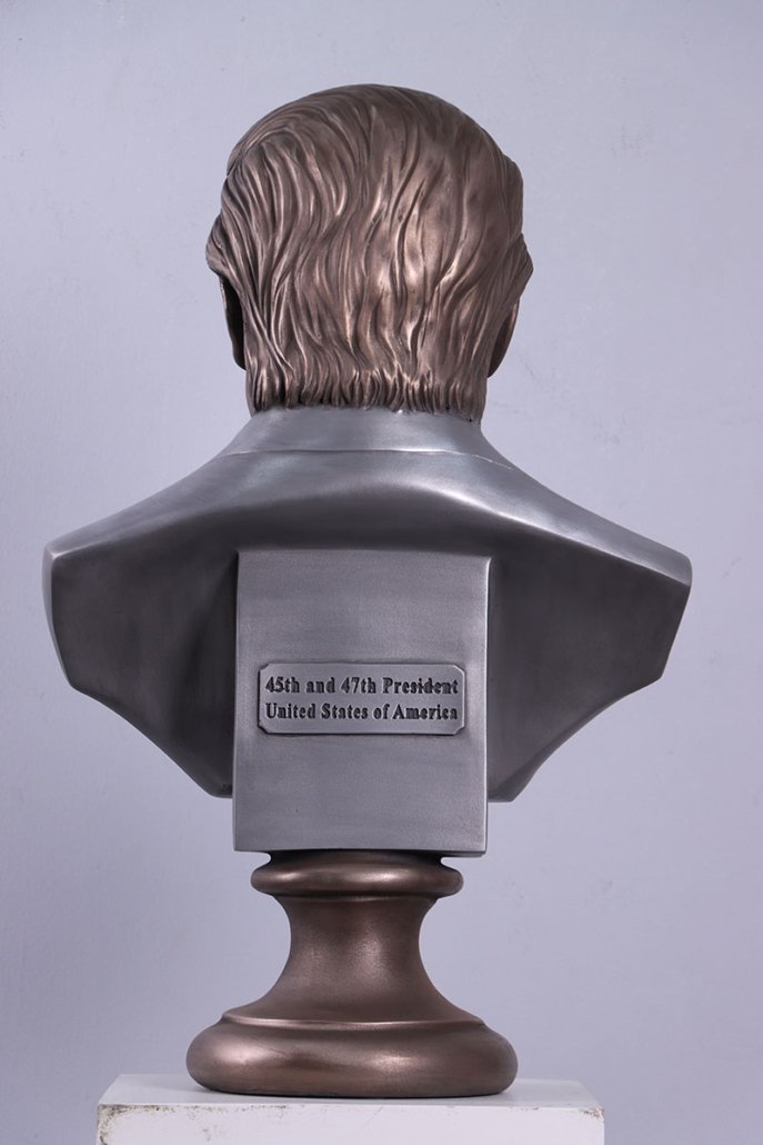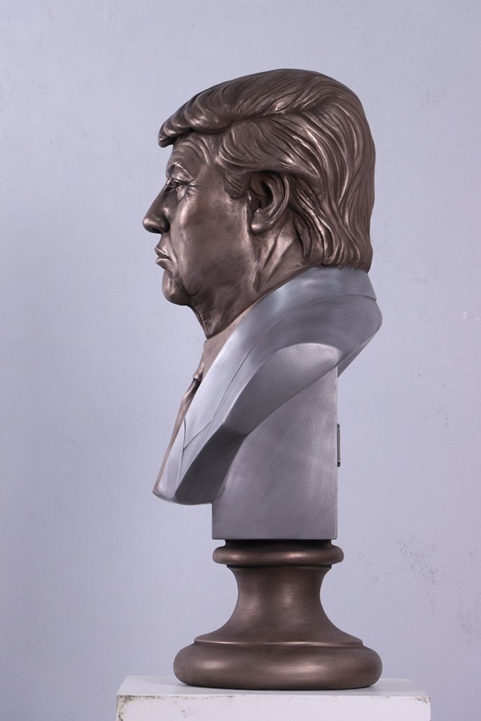 The Donald Trump Bust Bronzed is perfect for a pedestal, bookshelf, mantel, or credenza for the president. Faithfully sculpted, then cast in quality designer resin to capture each detail and highlighted with an antique bronze finish. Suitable for gifts, bedroom decoration, office desks, and living room decorations.