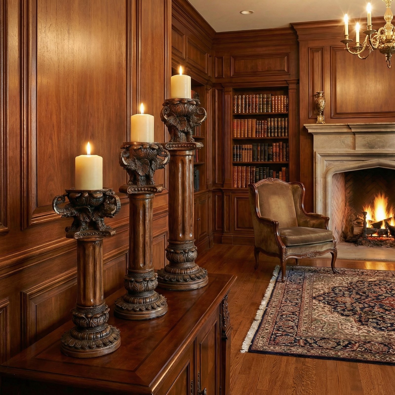 From the Serengeti Accessories Collection of AFD Home, we offer this Elephant Candleholder Set of 3. Sculpted in graduated sizes to create a tiered display, they measure 12.5, 16 and 19.5 Inches Tall. Aptly named after the Serengeti one of the last true natural Habitat’s and home of the great Migration. Elephants have always been a beloved and popular subject for Collectables and Decor. This artist created sculpture is Hand Cast in durable Poly Resin. The Hand finishing offers a rich finish with accented burnished Tones and highlights with contrasting White Tusks. You may also consider adding The Elephant Torchere or Elephant Grand Serving Bowl, also available from the Collection. No Assembly Required..