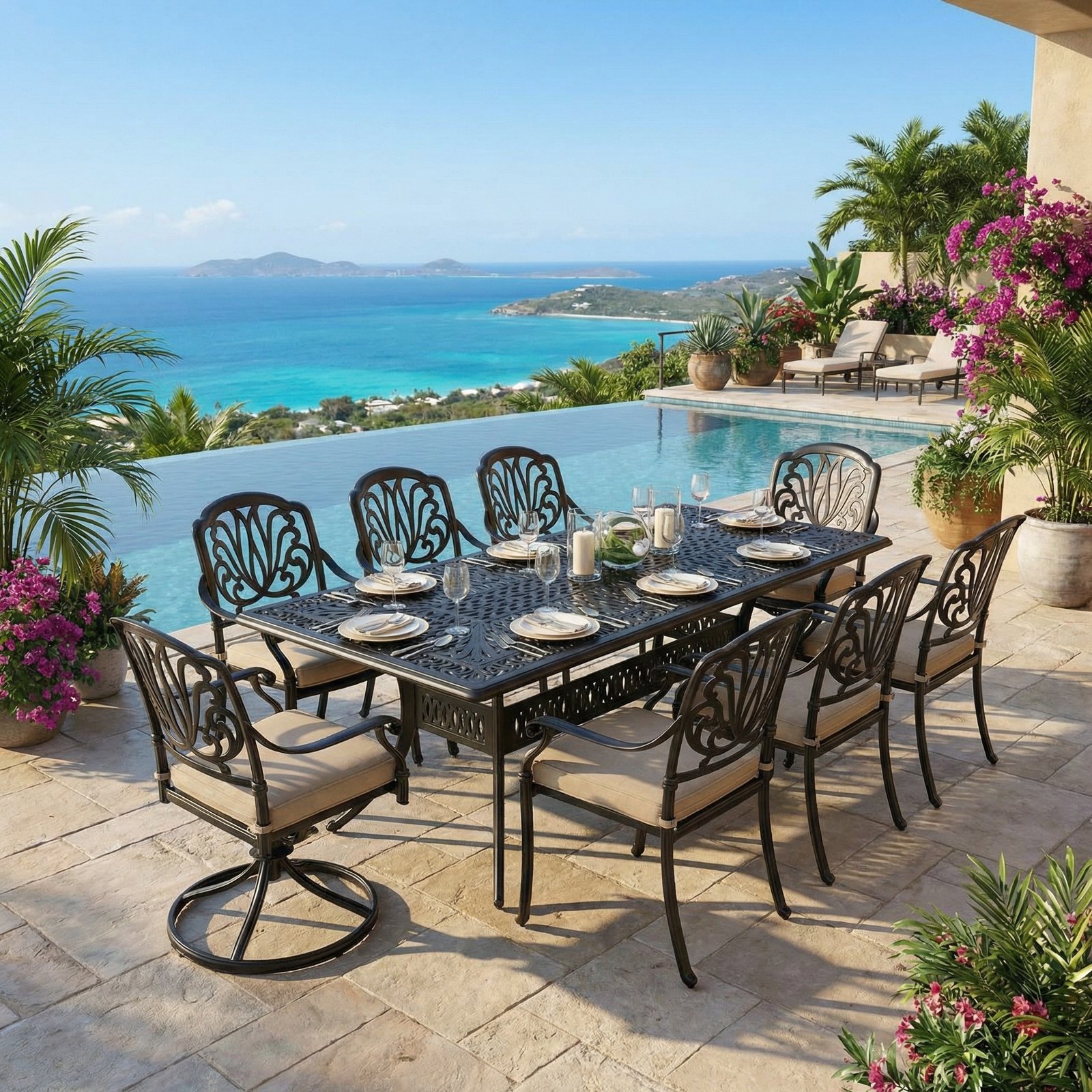 - Consider pairing this amazing dining Table set of 11 with the matching Swivel Chaise Lounges. to have a Siesta after the big Fiesta r