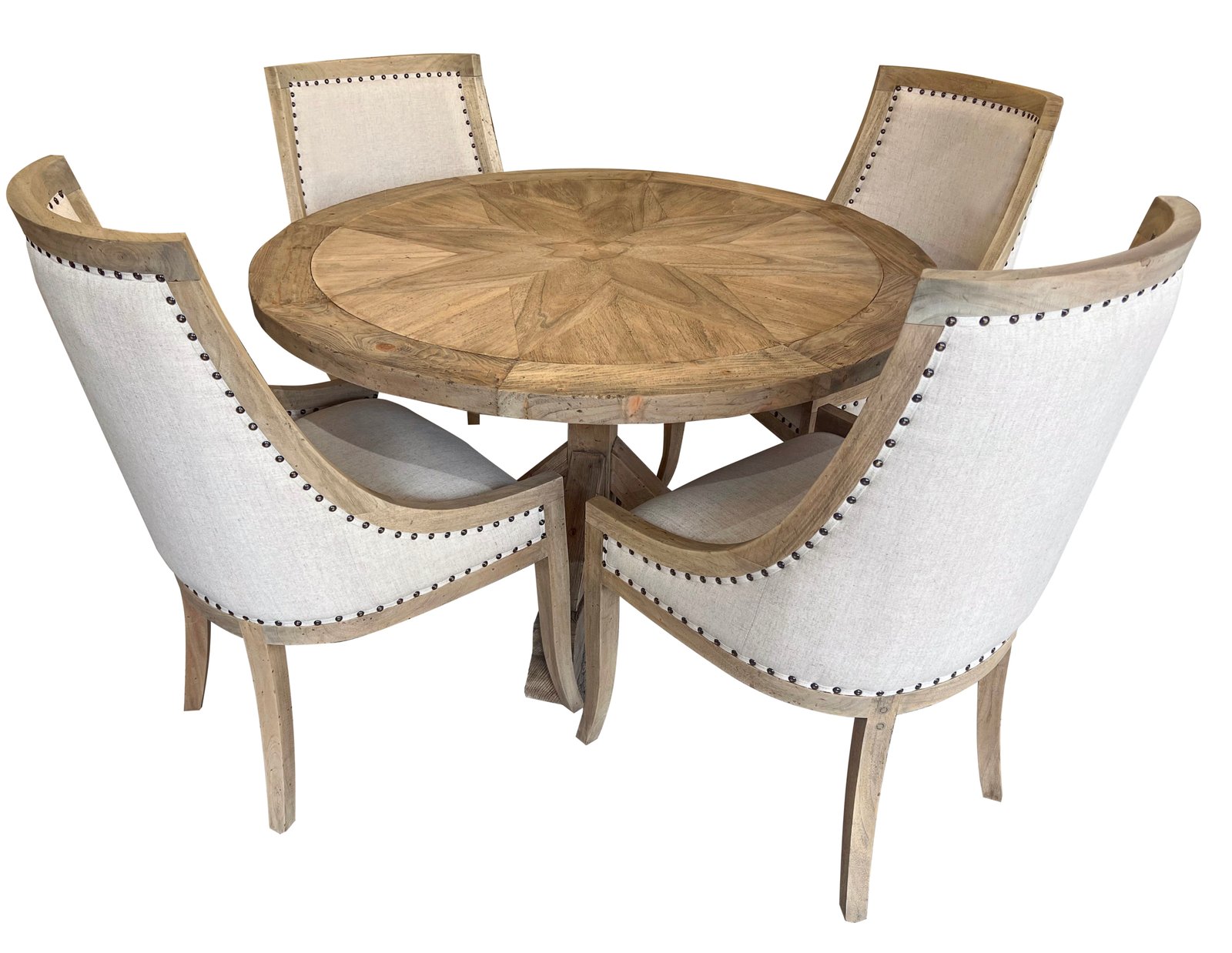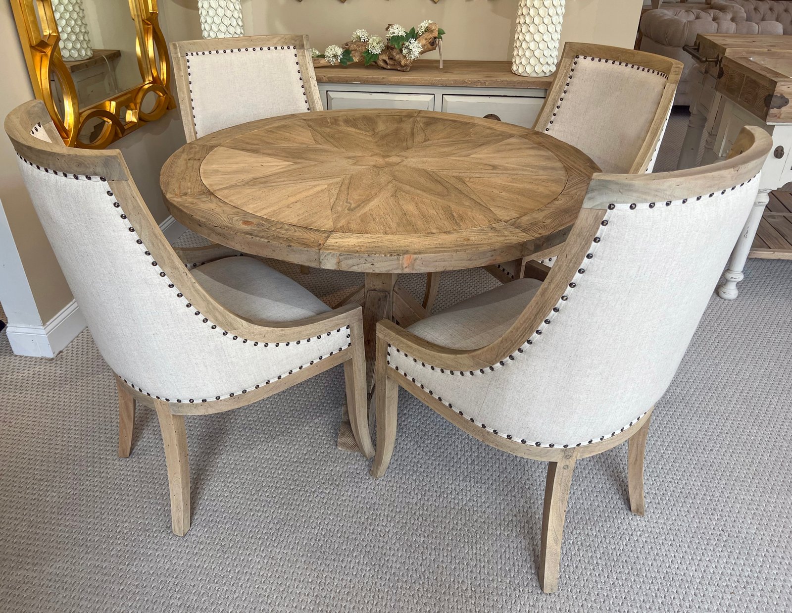 Farmhouse Barrel 60′ Round Dining Table Set of 5