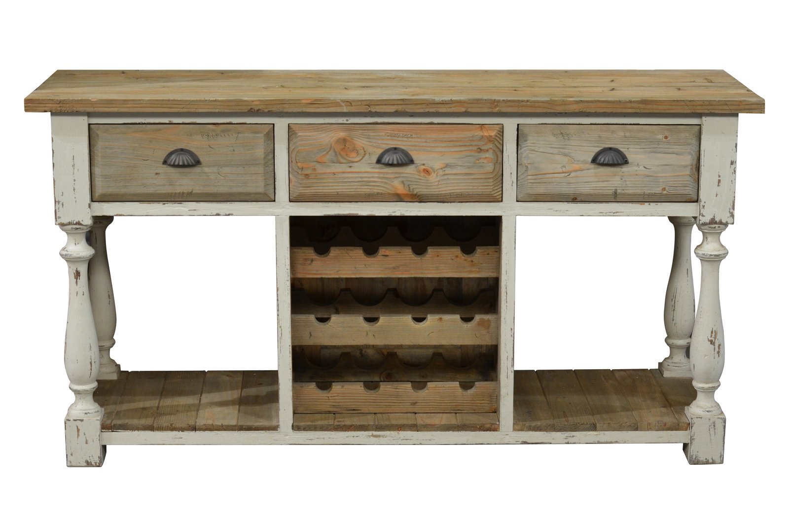 Farmhouse Console with Wine Rack White Chalk and Natural
